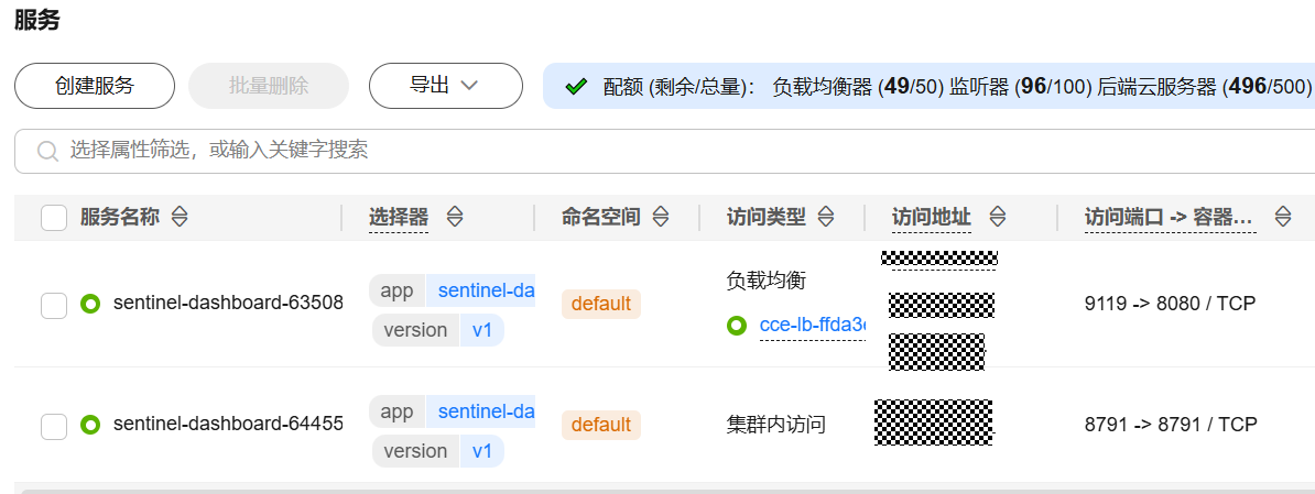 - 部署sentinel-dashboard工作负载时,需要添加服务如下: