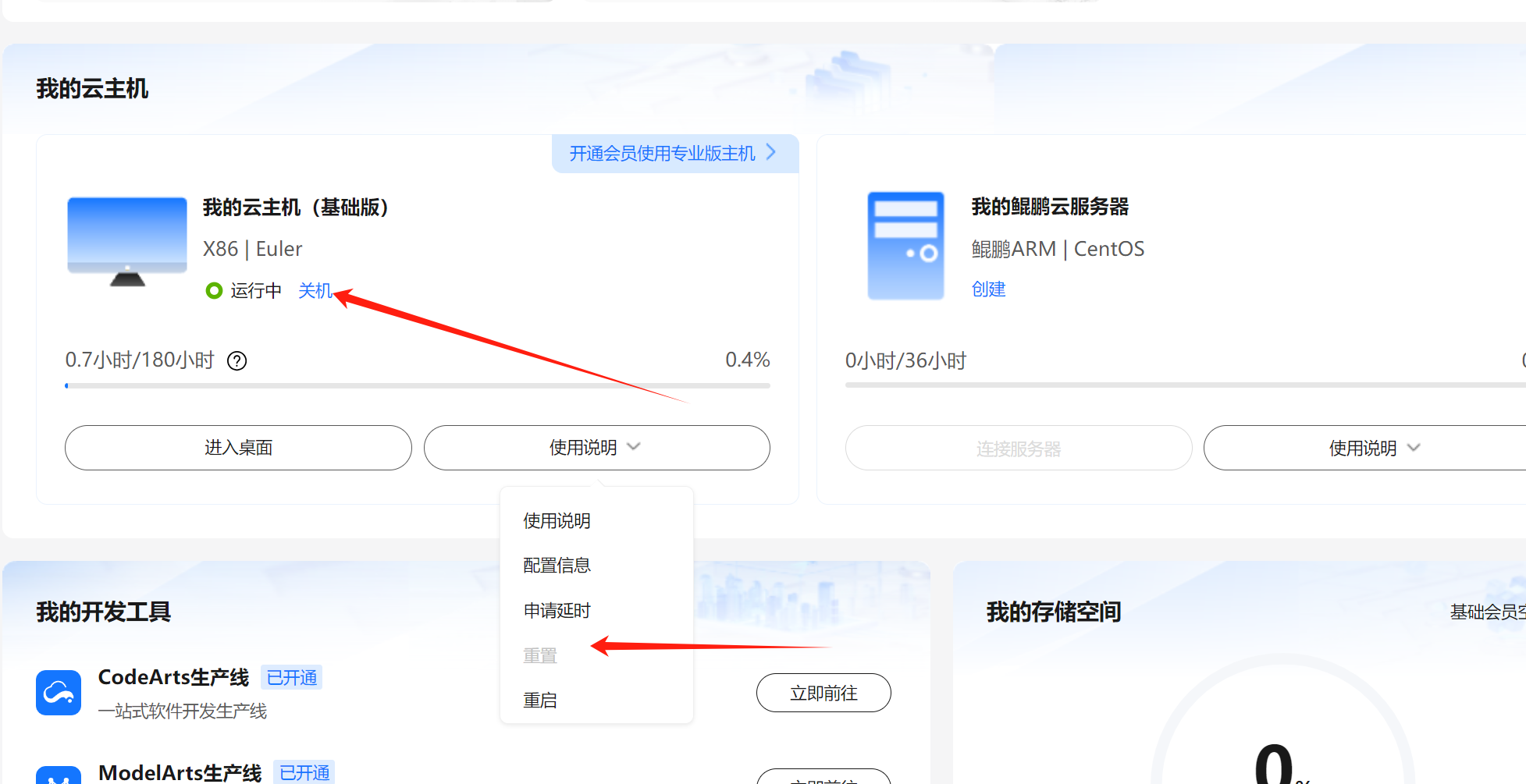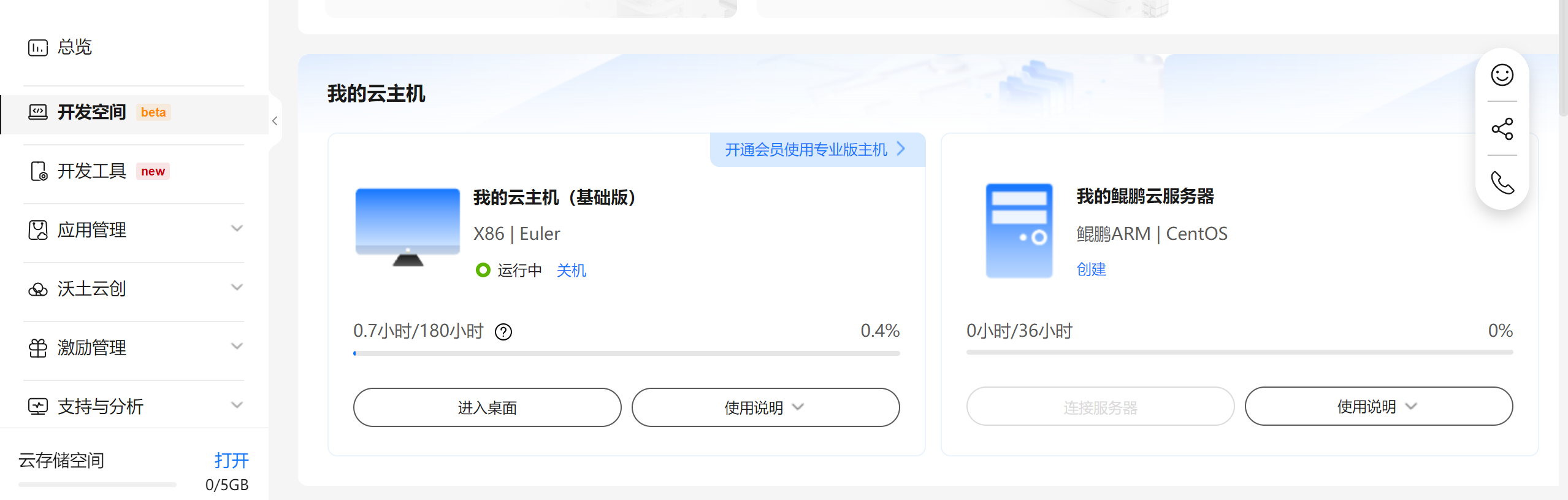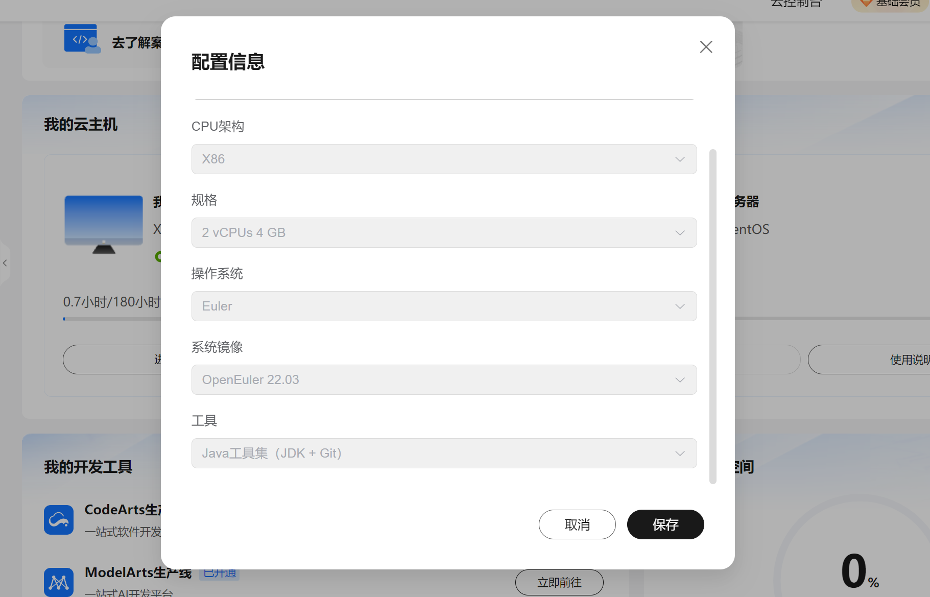 如果还没有华为开发者空间云主机,可点击链接 ,即可领取免费专属云主机。免费领取的有180小时的免费使用时间。