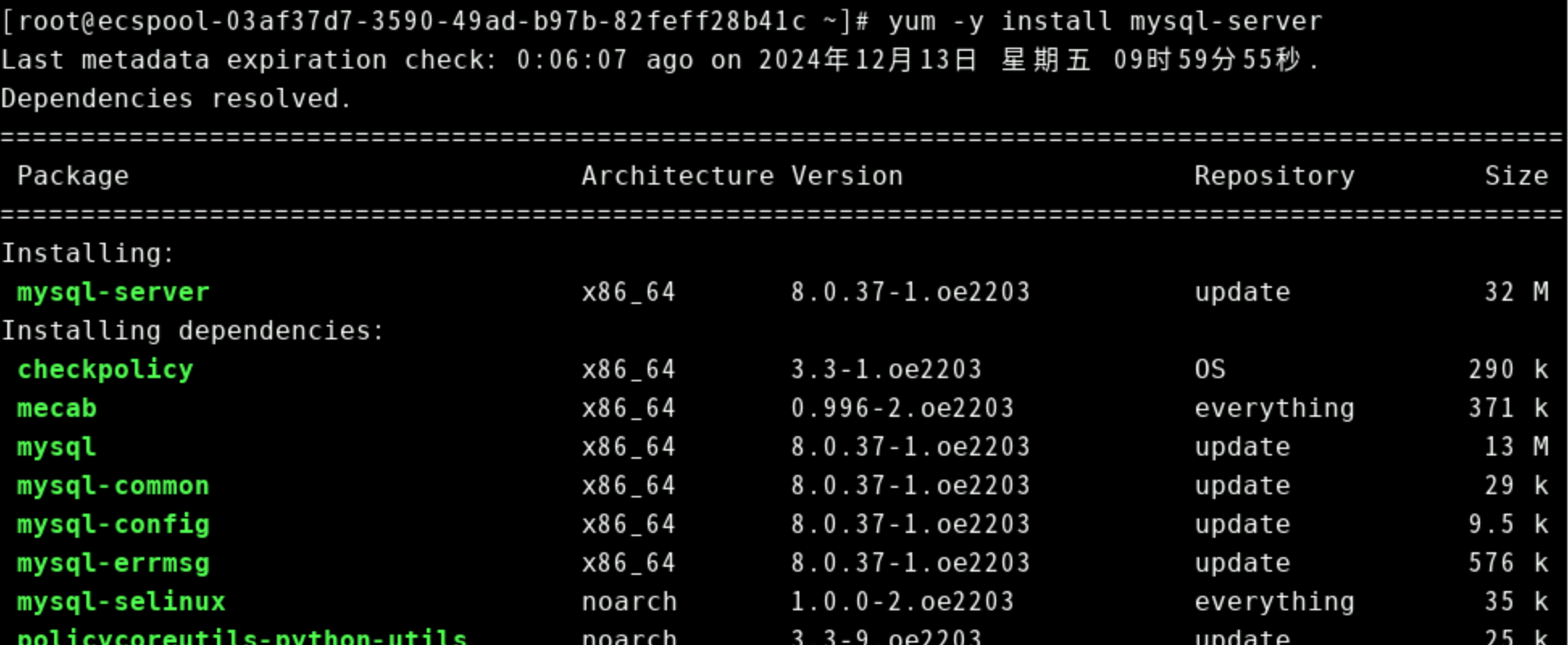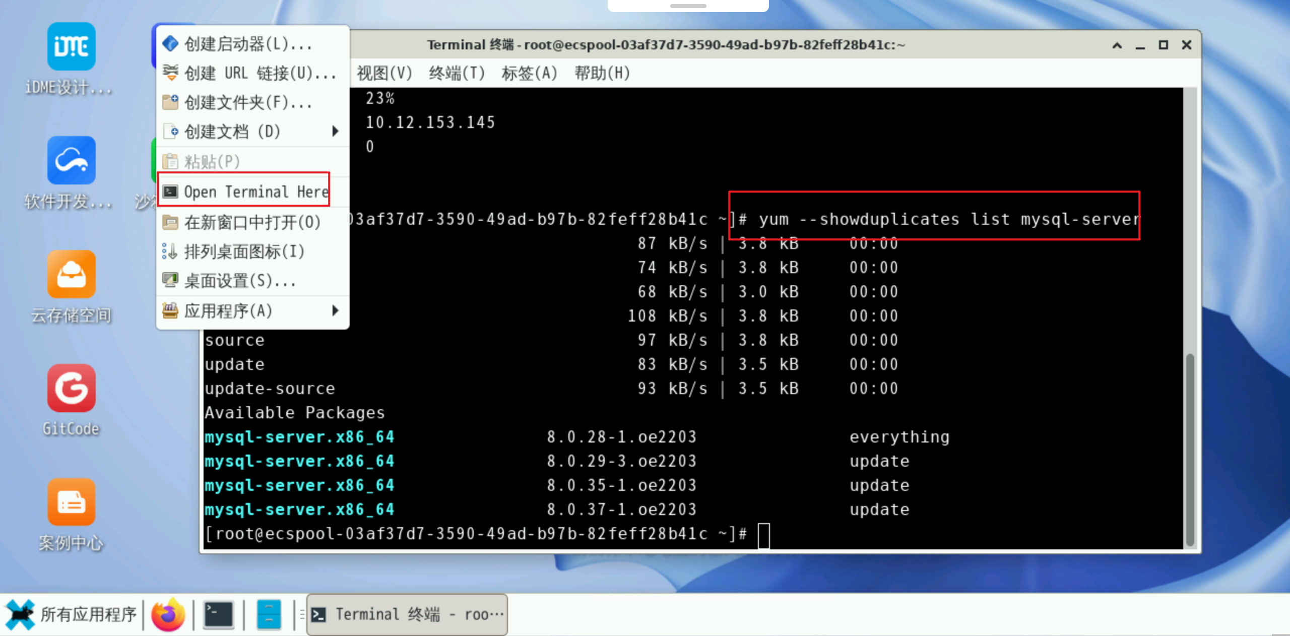 在开发者空间云主机中,默认已经为我们配置好的yum源中,已经存在了MySQL8.0的版本,所以我们可以直接进行安装,而不再需要配置其他安装源。