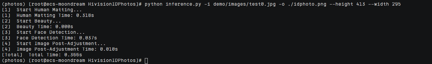 python inference.py -i demo/images/test0.jpg -o ./idphoto.png --height 413 --width 295