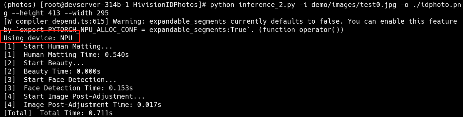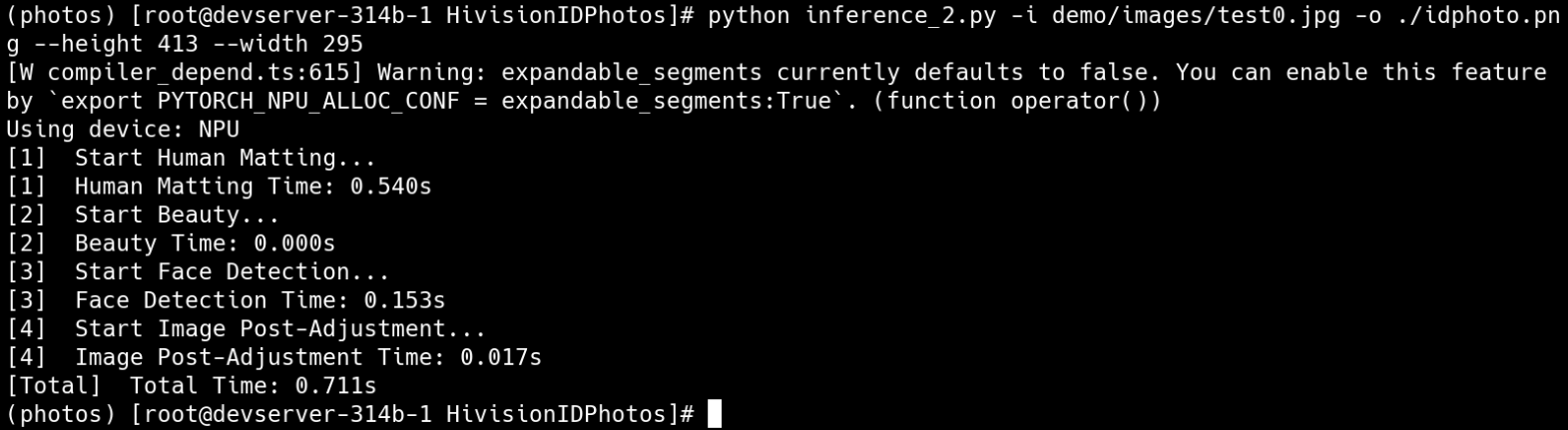 python inference_npu.py -i demo/images/test0.jpg -o ./idphoto.png --height 413 --width 295