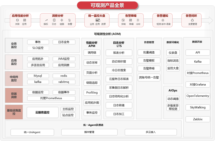 华为云可观测平台AOM主要能力: