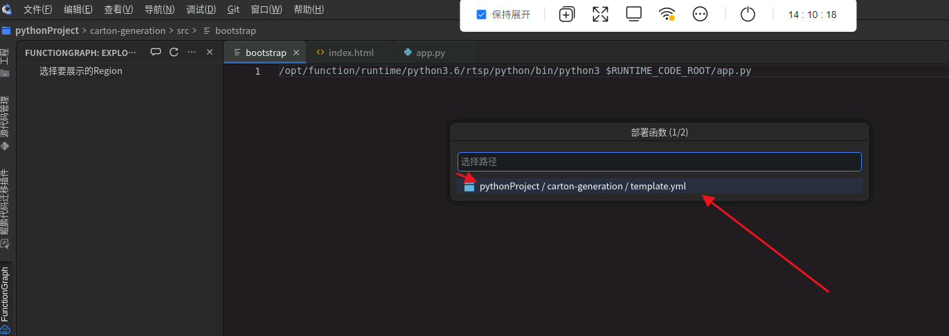 部署函数: 接下来我们就可以回到插件页面,选择部署函数。部署的时候我们选择新建的函数下的yml文件。