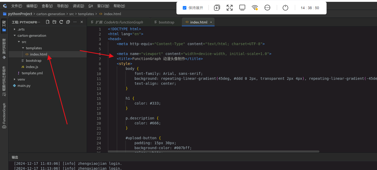 创建文件: 在templates中创建文件index.html。
