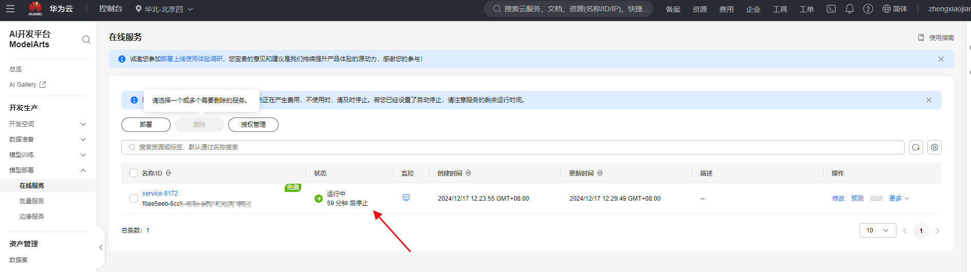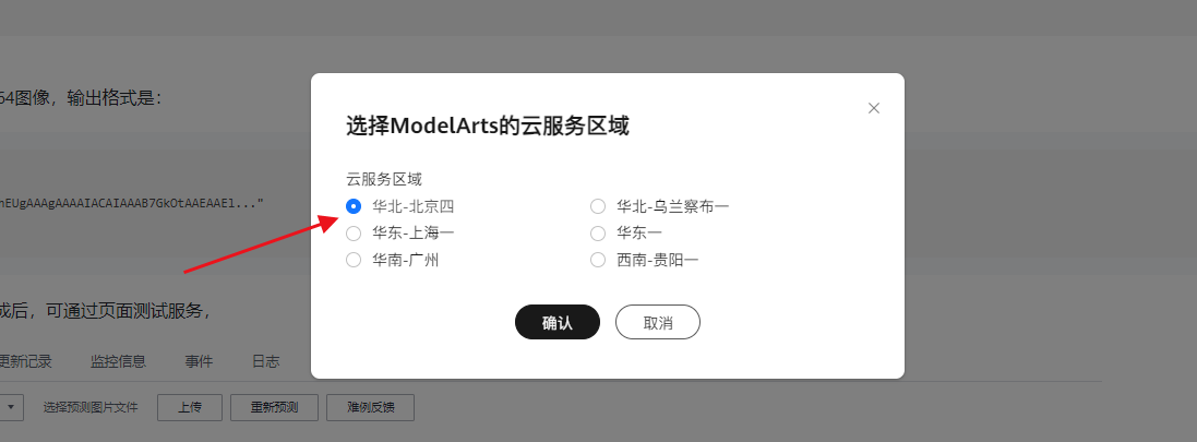 ModelArts云服务:选择ModelArts的云服务区域。