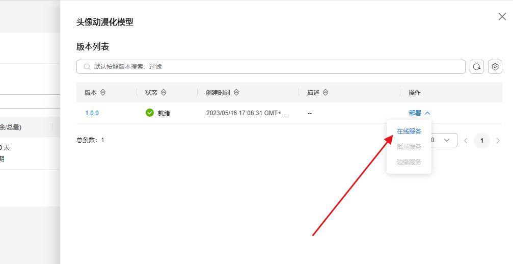 部署:委托创建成功后订阅应用列表,点击“部署”。准备就绪后,点击右侧弹窗“部署”按钮,选择“在线服务”。