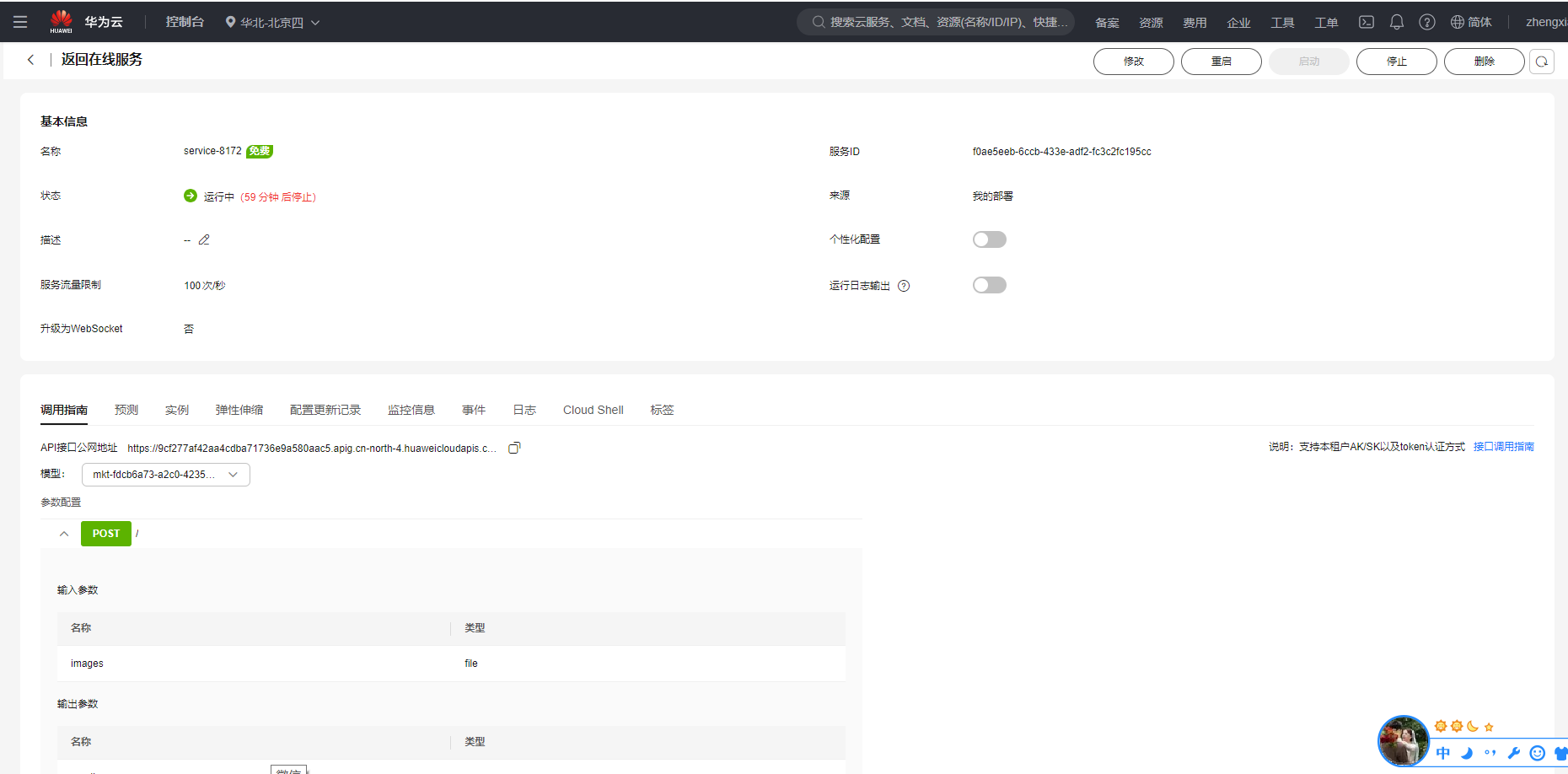 运行服务:确认服务处于运行中状态,复制API接口公网地址备用。