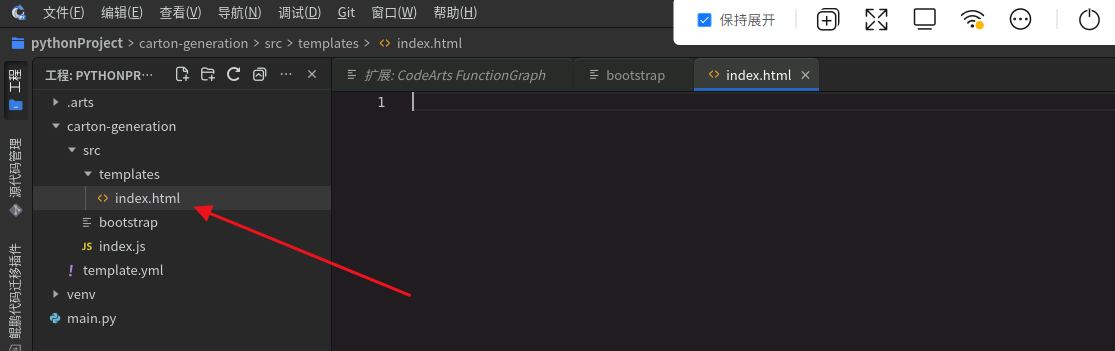 创建文件: 在templates中创建文件index.html。