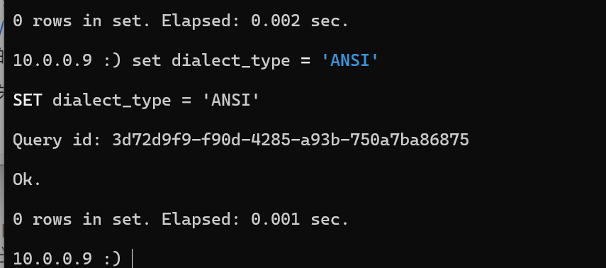 set dialect_type = 'ANSI'