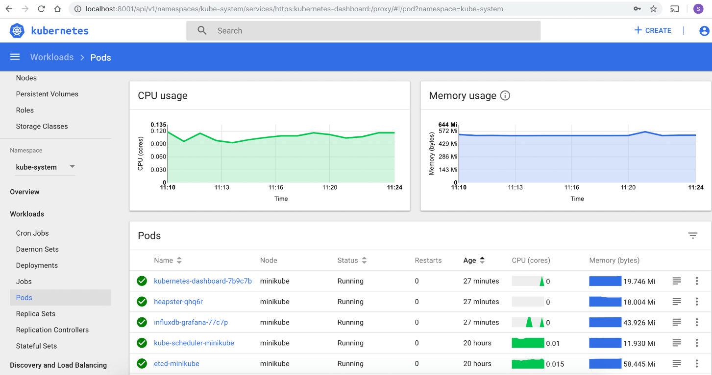 Dashboard 同时展示了 Kubernetes 集群中的资源状态信息和所有报错信息。