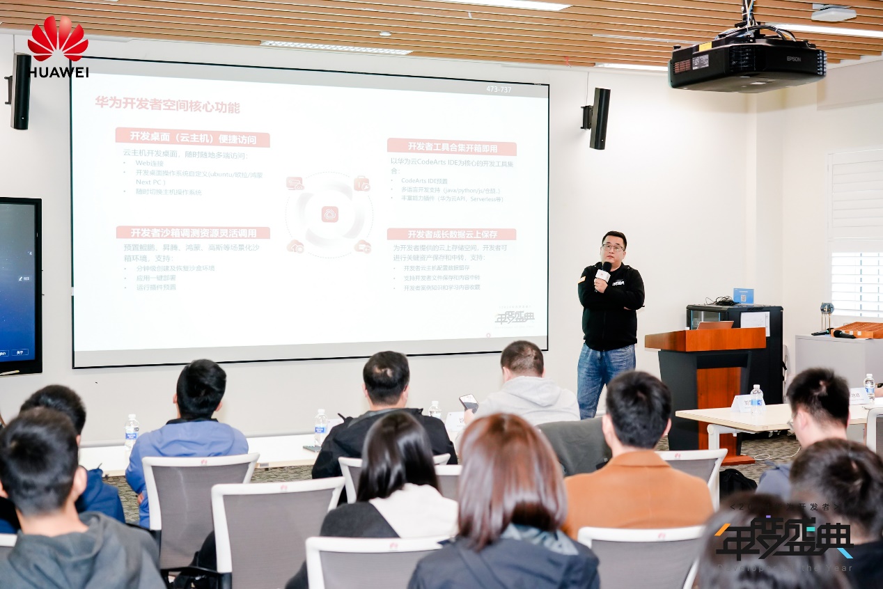 华为开发者空间产品专家刘雪冬发表了《华为开发者空间:开启多元开发之旅,引领技术前沿浪潮》演讲。华为开发者空间,是以开发者为对象进行开发者关系管理,提供开发者交流学习、实践创新的开发者生态平台。他表示,华为开发者空间,基于华为根生态(昇腾、鸿蒙、鲲鹏、GaussDB、欧拉)技术服务,提供开发者云主机开发桌面、预置工具及资源、配套案例指导,让开发者低门槛使用华为根技术工具服务能力,助力开发者在华为根生态上创新。