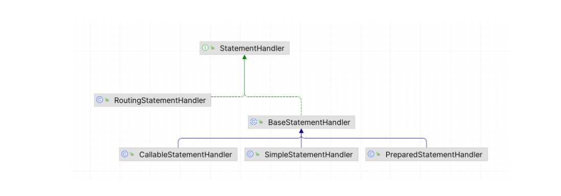 默认情况下,MyBatis 使用 RoutingStatementHandler 类作为 StatementHandler 的实现类,它是一个路由器,根据 SQL 语句的类型和配置文件中的参数自动选择合适的 StatementHandler 实现类,这是一个典型的装饰器设计模式。