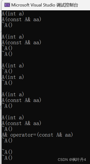 // 但是他的生命周期只有这一行,我们可以看到下一行他就会自动调用析构函数