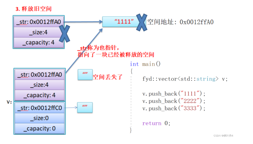 - 如果拷贝的是自定义类型的元素,memcpy既高效又不会出错,但如果拷贝的是自定义类型元素,并且自定义类型元素中涉及到资源管理时,就会出错,因为memcpy的拷贝实际是浅拷贝。
