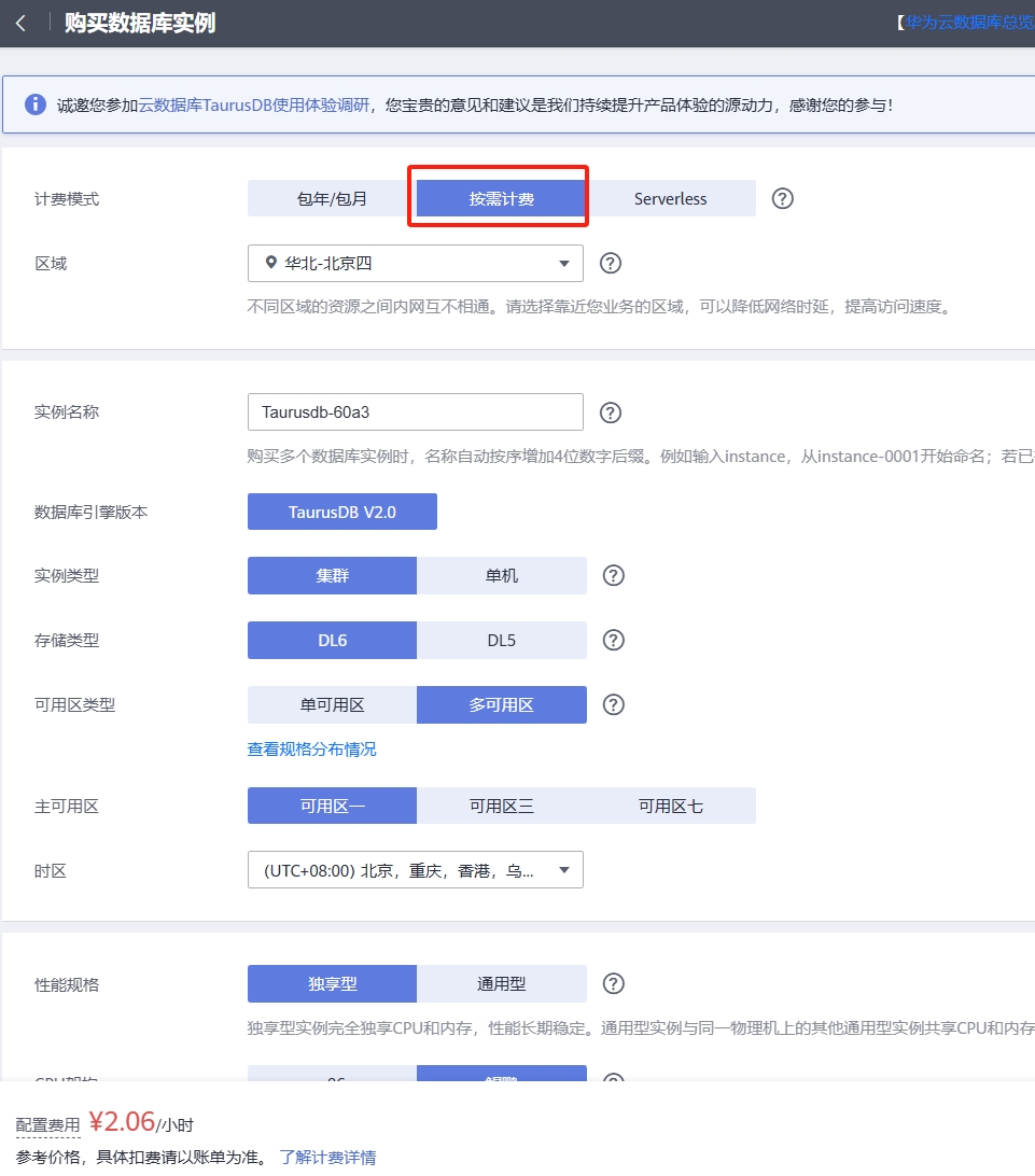 【摘要】 活动链接【开发者日·创享峰会专场】体验官:体验六大实践项目,领开发者定制好礼TaurusDB:挑战数据业务汇报任务,轻松玩转SQL操作 操作步骤https://www.huaweicloud.cn/产品-数据库-云数据库TaurusDB云数据库的体系是完备的,与企业需求是适配的,建议初学者多多接触云时代的基础设施。勾选按需计费就可以了,计量与计量模式也是一个重要的产品特征,喜欢产品经理岗...