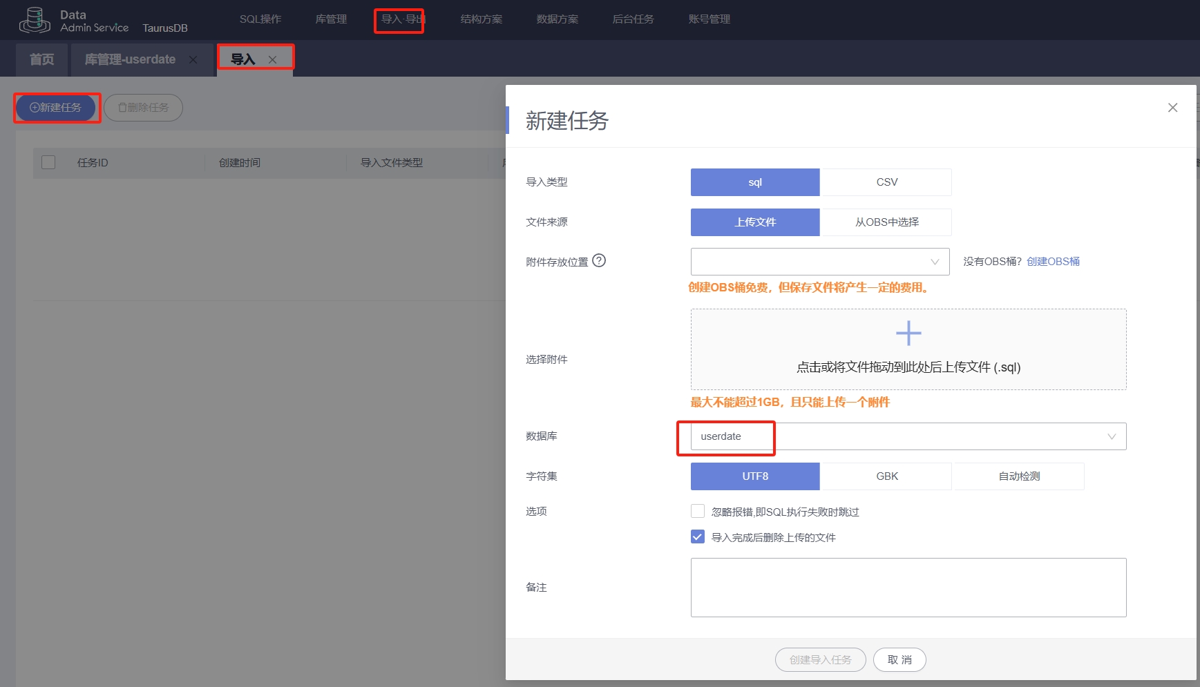 新建数据库,导入数据