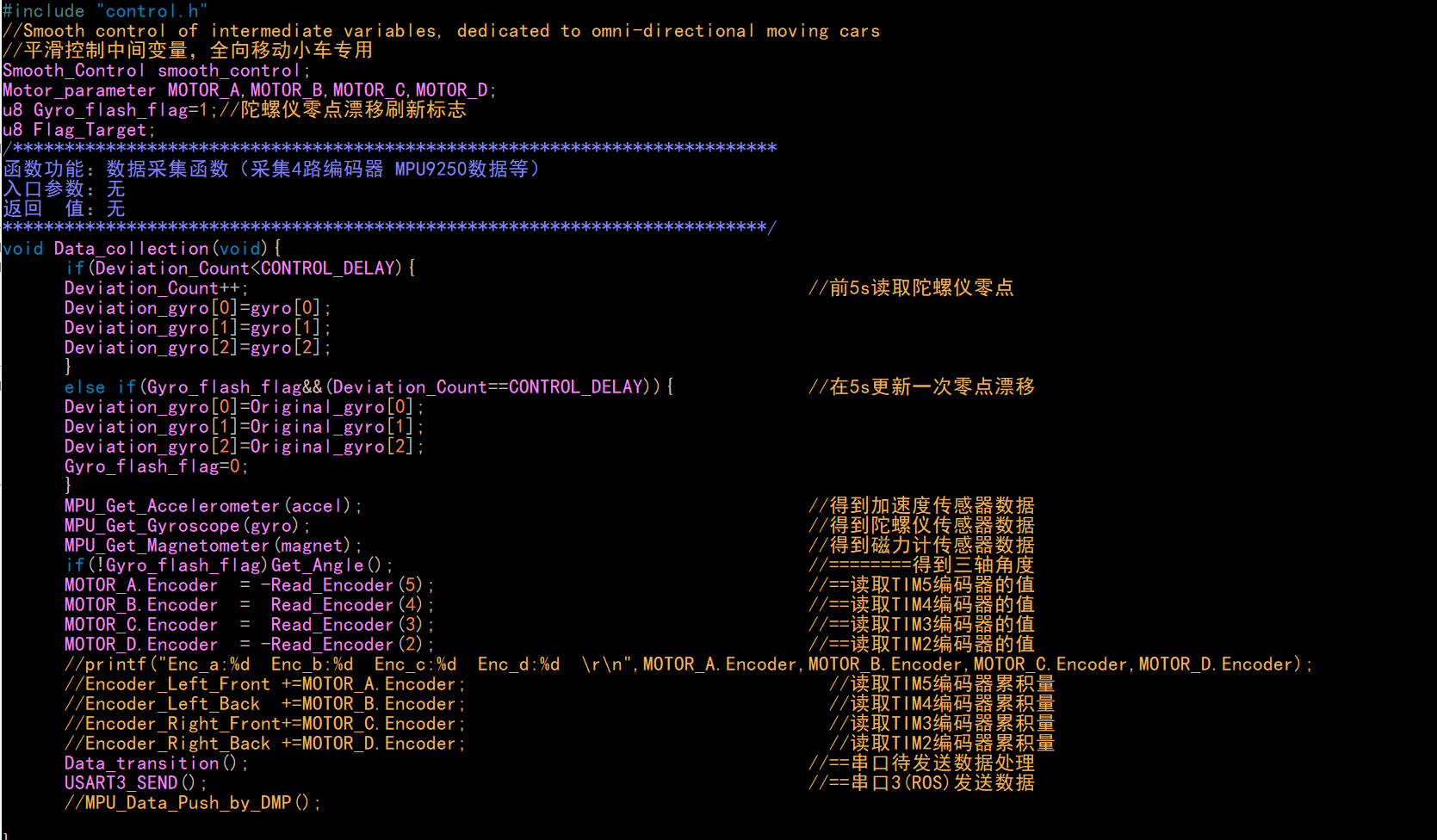 1.Data_transition()函数放进control 5ms控制中断运行