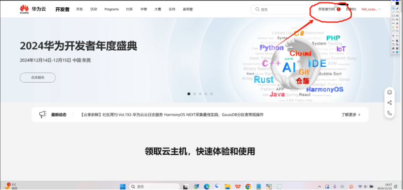 (1)登录以后,进入开发者空间