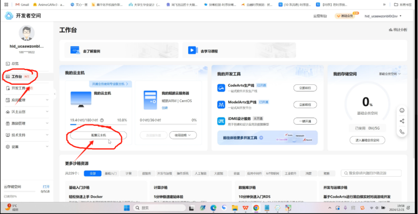 (2)点击工作台,然后点击配置云主机
