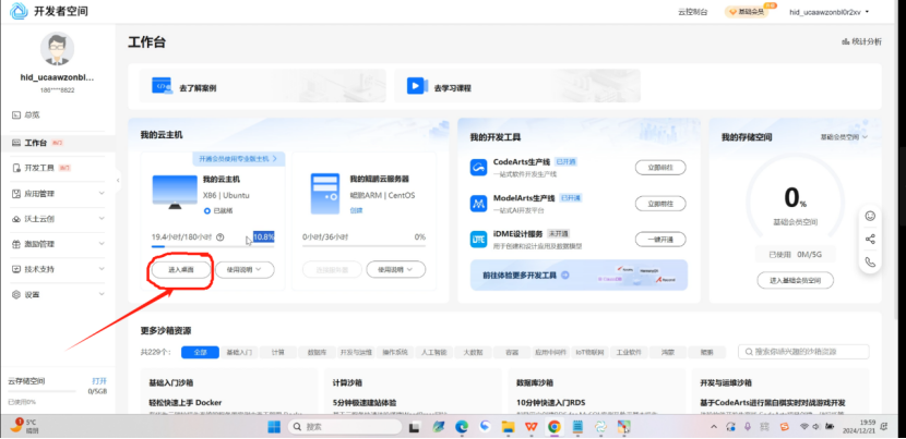 (4)点击进入桌面,会切换页面进入云主机