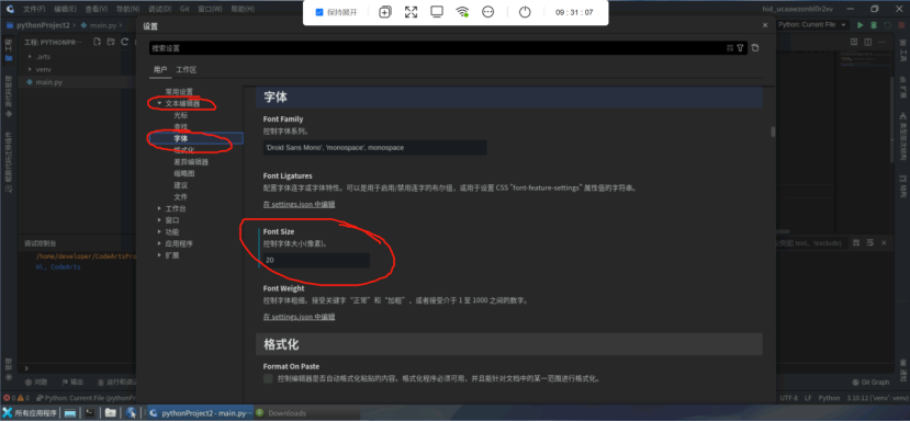 四、设置云主机中开发应用的字体大小。