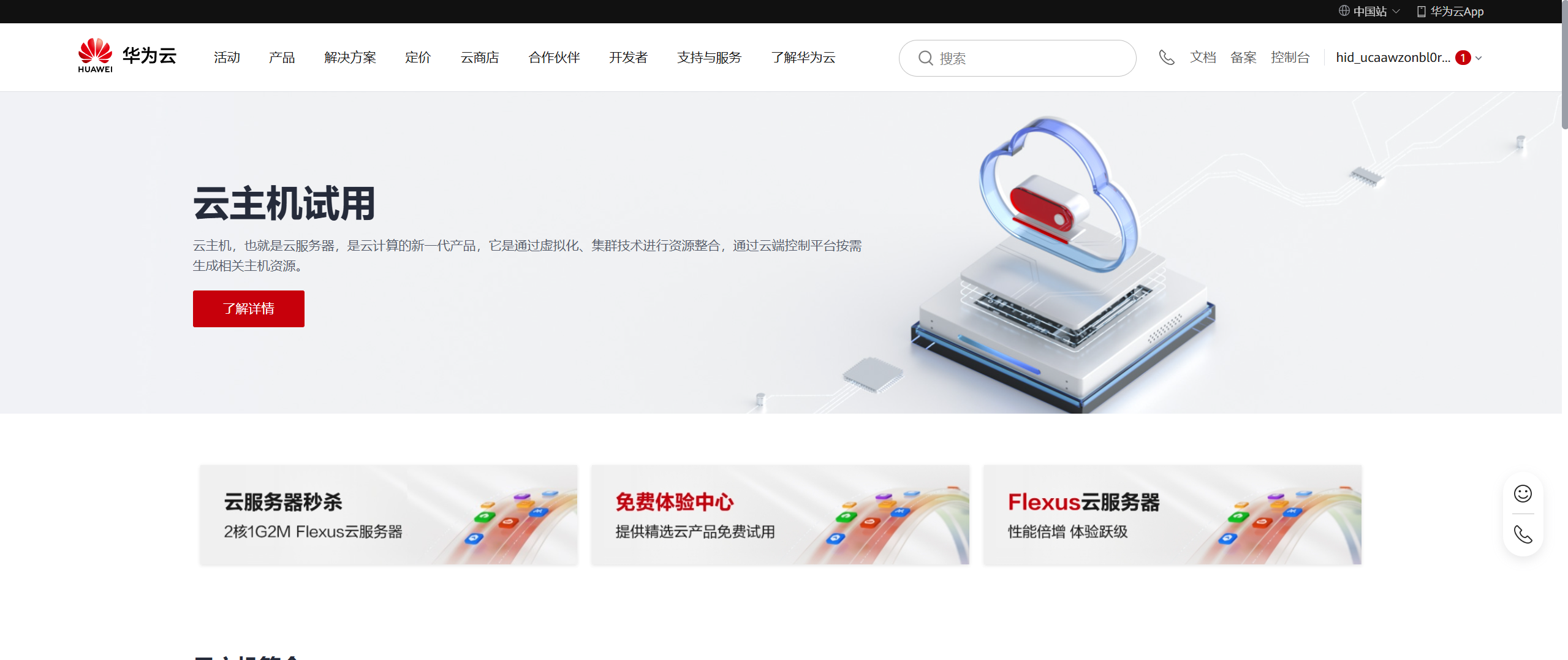 免费的华为云主机申请流程