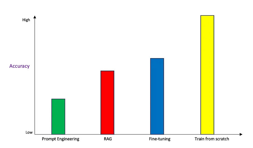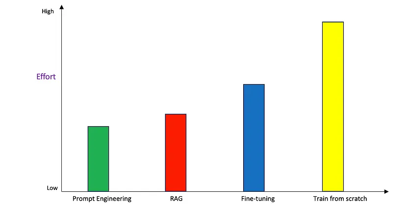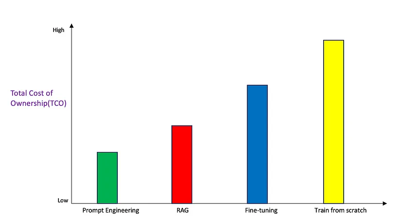 对于 LLM 的应用,要想获得一个可用 AI 模型的解决方法,除了自己训练一个模型,通常有以下三种方法: