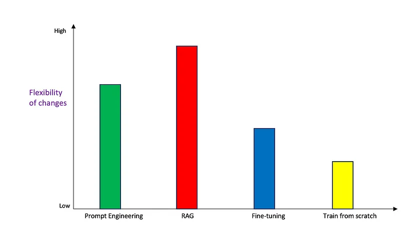 使用检索增强生成(Retrieval Augmented Generation (RAG)),可以在保持输出质量高的同时,获得最高程度的灵活性来更改不同组件(数据源、Embeddings、大模型、向量引擎)。