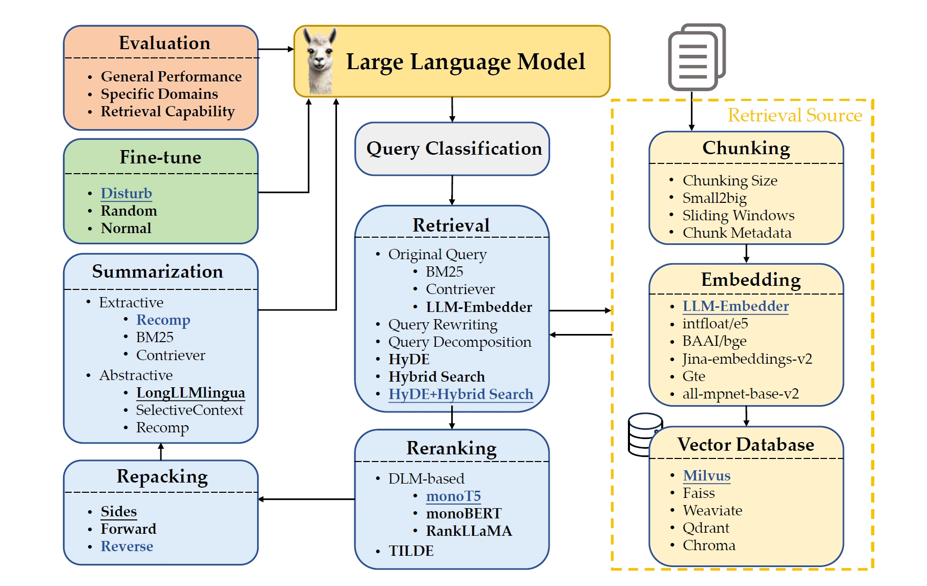 探讨了现有的RAG方法及其潜在组合,以确定最佳RAG实践。通过大量实验,提出了一些部署RAG的策略,以平衡性能和效率。此外,还展示了多模态检索技术如何显著提高关于视觉输入的问题解答能力,并通过“检索即生成”策略加速多模态内容的生成。这对于开发更可靠的AI应用具有重要意义,也为未来的相关研究指明了方向。