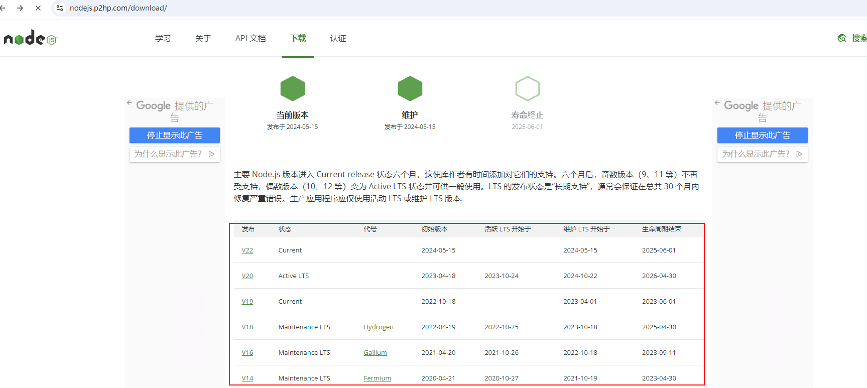 2.下载前端服务器工具,Node.js,选择合适的版本,然后进到下载页面: