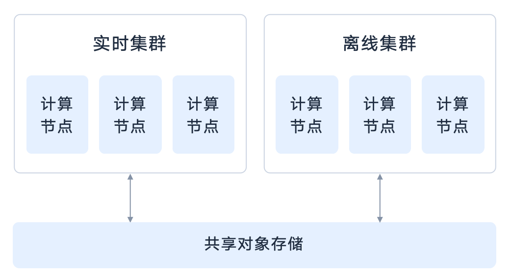 - 支持多计算集群:多个计算集群共享同一份数据,用户可以通过多计算集群对不同业务或者离线负载隔离。