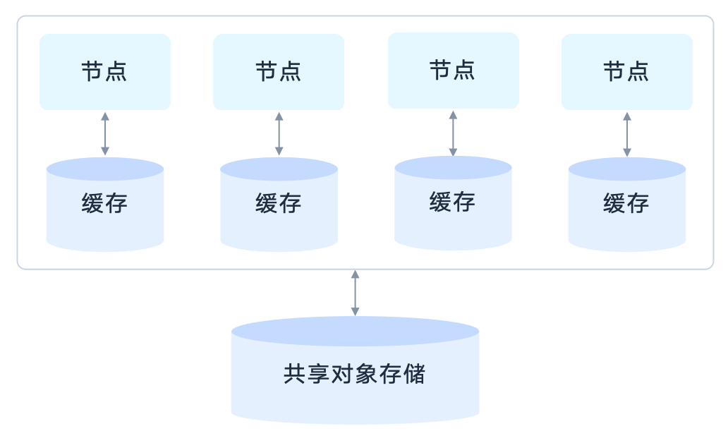 - 支持冷热存储分层:全量数据存储到成本更低且极其可靠的共享存储中,热数据仅在本地 Cache,相比存算一体三副本,存储成本最高下降至原先的 1/10;