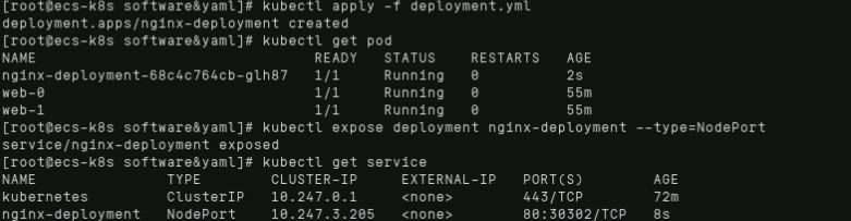 ➤ 步骤 3 用户通过命令行创建NodePort类型的Service并查看。