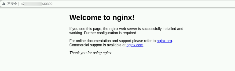 ➤ 步骤 6 打开浏览器,输入ECS绑定的公网地址+Service的Nodeport。如本示例中为:任意node节点EIP:NodePort