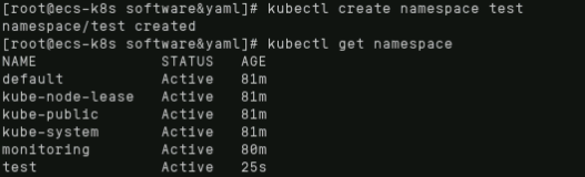 ➤ 步骤 2 通过以下命令可以手动的创建一个NameSpace命名空间并查看。