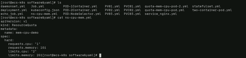 ➤ 步骤 3 创建ResourceQuota并和NameSpace进行关联。