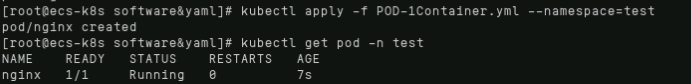➤ 步骤 3 创建一个POD并指定此POD运行在test命名空间。