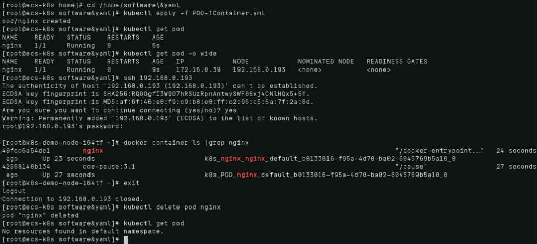 ➤ 步骤 5 当前实行ssh NodeIP命令,登录到node节点。