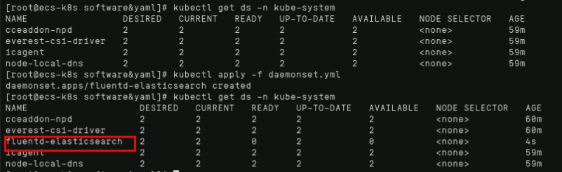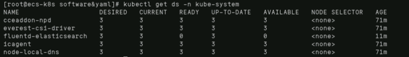 ➤ 步骤 6 等待节点创建完,返回服务器,通过命令行查看各个DaemonSet实例数是不是3。