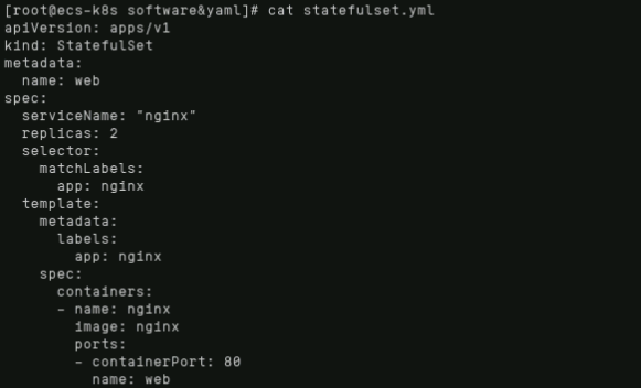 ➤ 步骤 2 通过以下命令创建StatefulSet。
