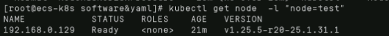 ➤ 步骤 2 通过以下命令给第一个节点打上node=test的标签。
