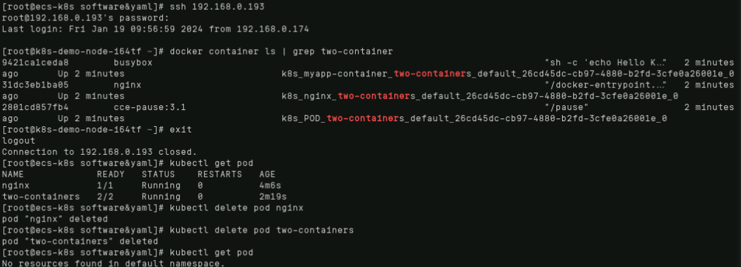➤ 步骤 8 然后执行以下命令删除POD并确认删除成功。