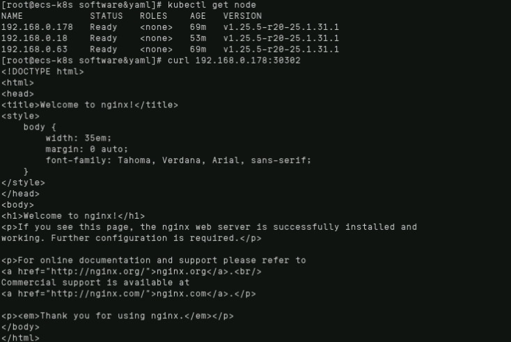 ➤ 步骤 4 通过curl命令验证网站是否可以访问。(任意一个Kubernetes NODE节点地址都行。)