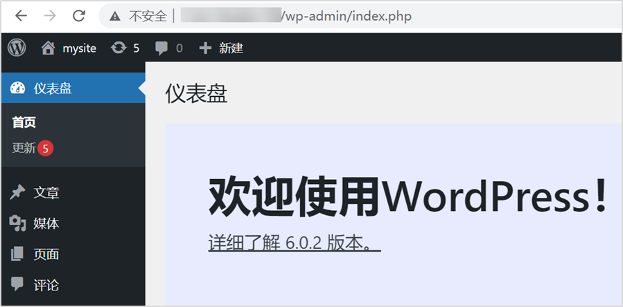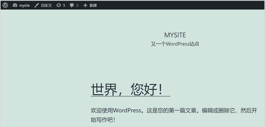 12. 点击左上角“mysite”进入到wordpress“mysite”首页。