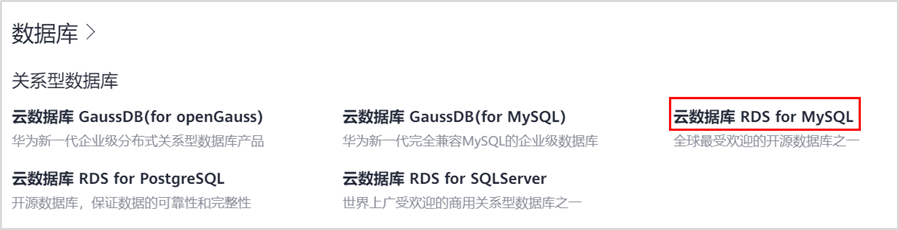 1. 打开控制台,在“服务列表”下选择“数据库 > 云数据库RDS”服务。