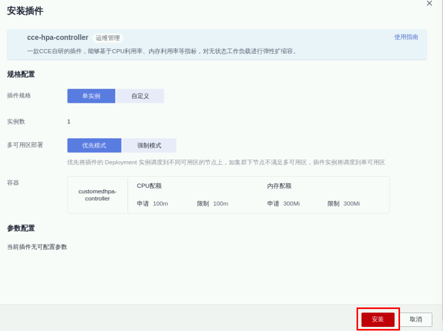 5. 进入“弹性伸缩”,点击“CustomedHPA策略”,并点击“安装”以安装插件。