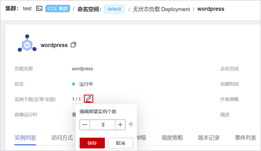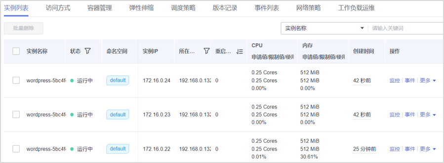 4. 在“实例列表”中可以看到此时实例数目在短短几秒钟之间已扩容至3个。