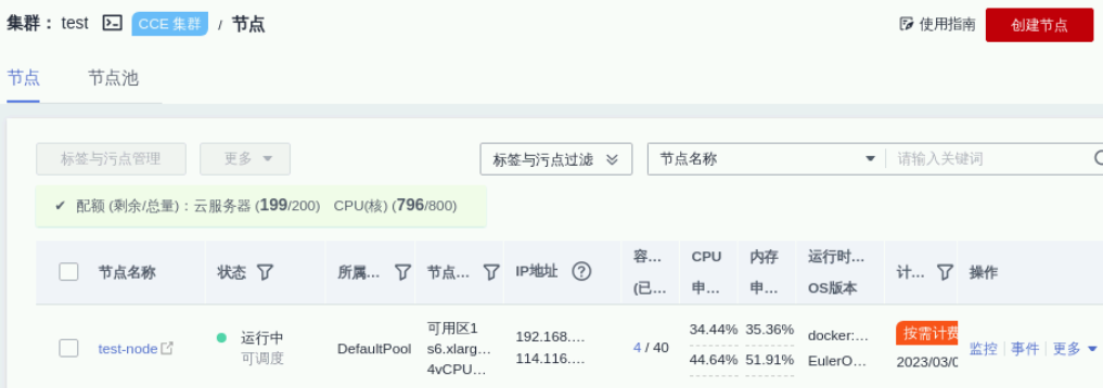 11. 节点创建需要4分钟左右。返回节点管理列表,可查看到添加完成的节点,状态为“运行中”。