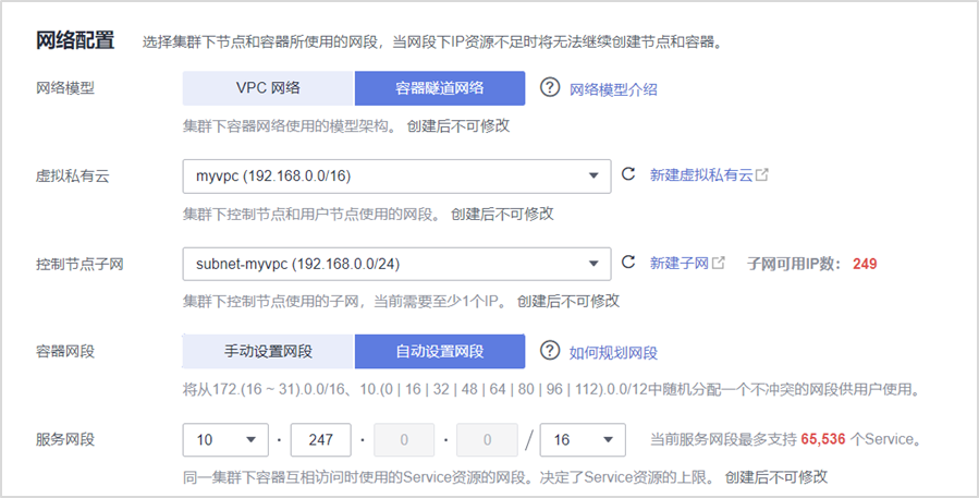 控制节点子网:选择已创建的子网,如subnet-myvpc
