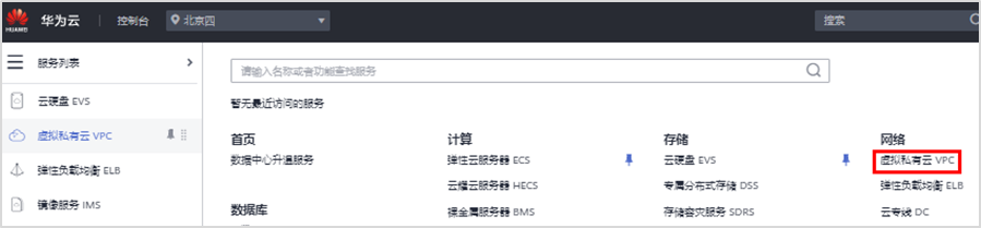 1. 进入控制台后,在“服务列表”下点击“网络 > 虚拟私有云”,进入网络控制台页面。